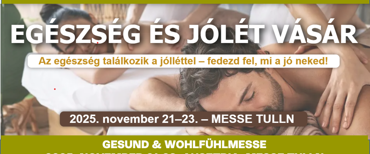 2025. november 21-23. között Ausztriában, Tullnban kerül megrendezésre a GESUND&WOHLFÜHLMESSE, ami Alsó-Ausztria legnagyobb egészség és wellness kiállítása.
