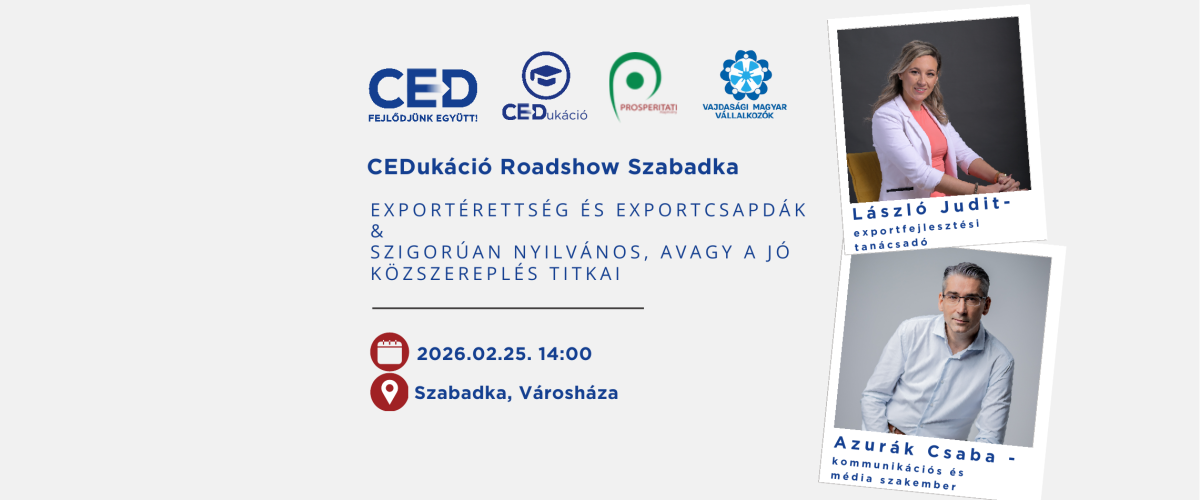 CEDukáció Roadshow Szabadka - Exportérettség és exportcsapdák & Szigorúan nyilvános, avagy a jó közszereplés titkai